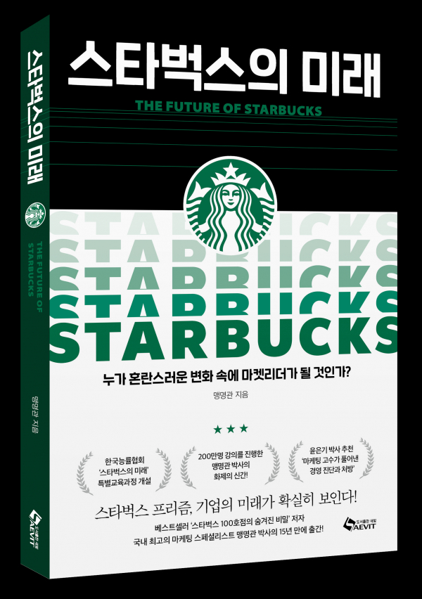 스타벅스가 기껏해야 100호점 수준일 때 '스타벅스 100호점의 숨겨진 비밀'을 세상에 내놓으며 스타벅스를 이야기했던 마케팅스페셜리스트 맹명관 교수가 '스타벅스의 미래'(도서출판 새빛 출판)라는 책으로 ‘스타벅스’를 이야기한다.