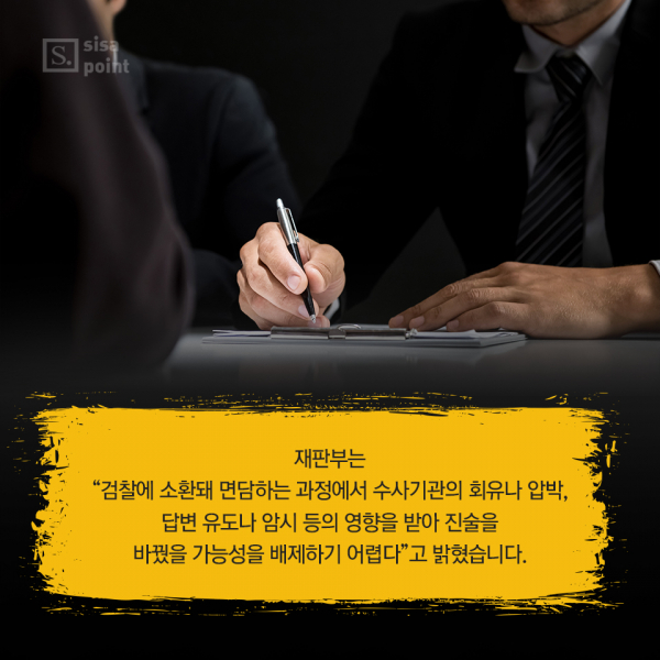 5. 재판부는 “검찰에 소환돼 면담하는 과정에서 수사기관의 회유나 압박, 답변 유도나 암시 등의 영향을 받아 진술을 바꿨을 가능성을 배제하기 어렵다”고 밝혔습니다.