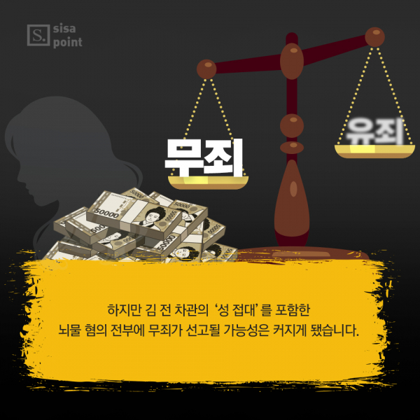 9. 하지만 김 전 차관의 ‘성 접대’를 포함한 뇌물 혐의 전부에 무죄가 선고될 가능성은 커지게 됐습니다.