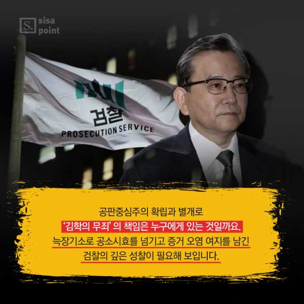 10. 공판중심주의 확립과 별개로 ‘김학의 무죄’의 책임은 누구에게 있는 것일까요. 늑장기소로 공소시효를 넘기고 증거 오염 여지를 남긴 검찰의 깊은 성찰이 필요해 보입니다.