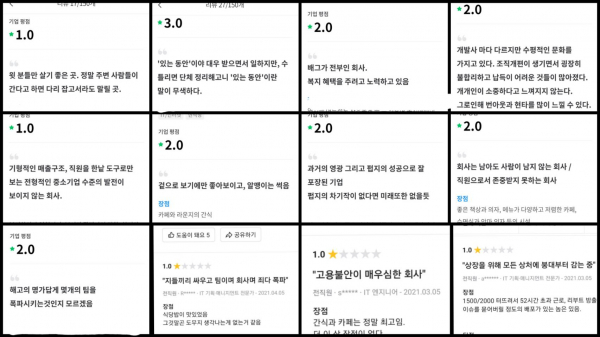 크래프톤 역시 고용불안으로 직원들의 불만이 큰 것으로 나타났다. 기업정보 플랫폼 잡플래닛에는 “해고의 명가” “고용불안에 방점을 찍은 회사”라는 평가가 심심치 않게 올라와 있다. 어떤 이용자는 “큰 결심하고 크래프톤으로 이직했는데, 프로젝트 드랍으로 1년 만에 퇴사했다”고 전했다.