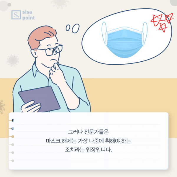 3. 그러나 전문가들은 마스크 해제는 가장 나중에 취해야 하는 조치라는 입장입니다.