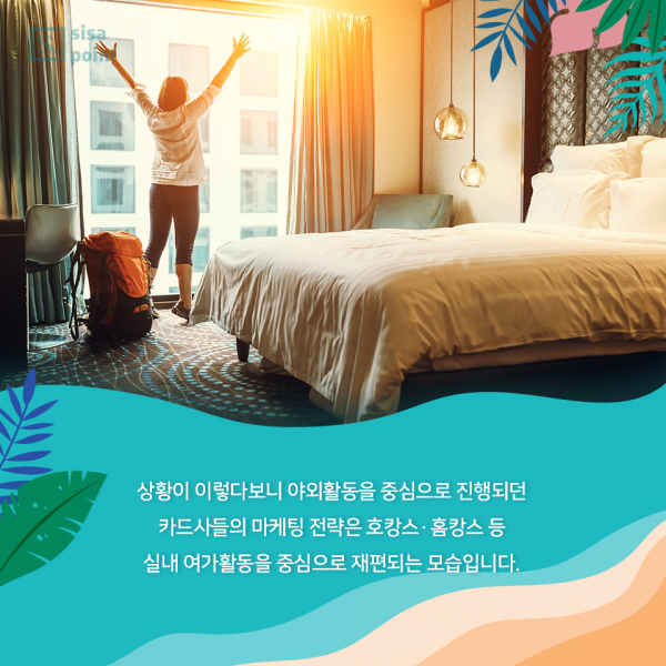 상황이 이렇다보니 야외활동을 중심으로 진행되던 카드사들의 마케팅 전략은 호캉스·홈캉스 등 실내 여가활동을 중심으로 재편되는 모습입니다.