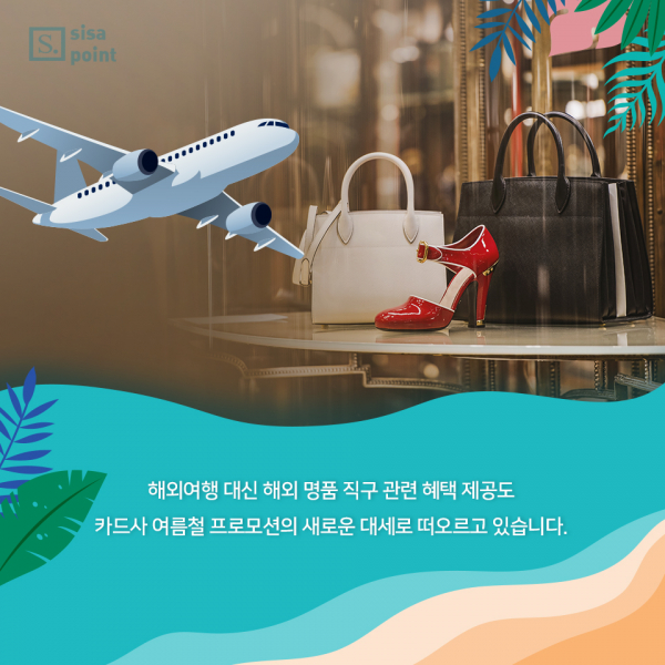 해외여행 대신 해외 명품 직구 관련 혜택 제공도 카드사 여름철 프로모션의 새로운 대세로 떠오르고 있습니다.