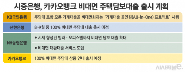 최근 금융당국이 가계대출 규제를 강화하고 있는 점은 비대면 주담대 출시를 더 어렵게 하고 있다. 게다가 카카오뱅크 등 인터넷은행이 시중은행과 달리 흥행에 성공하면 가계대출 경쟁의 판이 바뀔 수 있다는 점도 부담이다.