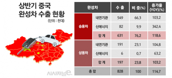 또한 한국산업자동차산업협회 자료에 따르면 올 상반기 중국 기업들의 자동차 판매량은 461만9000대로 전년대비 49.4% 증가하며 전세계 완성차 주요국 중 가장 높은 성장세를 기록했다.
