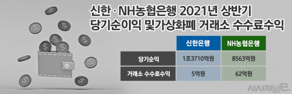 신한·농협은행은 가상화폐 거래소와 실명계좌 계약 연장 여부를 놓고 고민이 많았다. 거래소와의 계약에 따른 이익 대비 짊어져야 할 리스크가 더 크기 때문이다. 신한·농협은행이 올해 상반기 거래소와 제휴를 통해 거둔 수수료이익은 각각 5억원, 62억원에 그친다. 두 은행 모두 상반기 당기순익이 1조원 정도라는 것을 고려하면 작은 규모다.