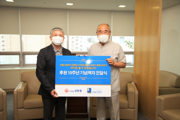 올해는 상생 10주년을 맞아 특별한 행사도 진행했다. 밀알복지재단 굿윌스토어가 감사의 마음을 담아 오뚜기와 함께한 10년의 시간을 담은 기념책자를 제작하여 전달한 것이다. 지난 8월 12일 오뚜기센터에서 진행된 기념책자 전달식에는 오뚜기 함영준 회장, 황성만 사장, 밀알복지재단 홍정길 이사장 등 양 사의 주요 관계자들이 참석해 감사의 마음을 전하는 뜻 깊은 시간을 가졌다.