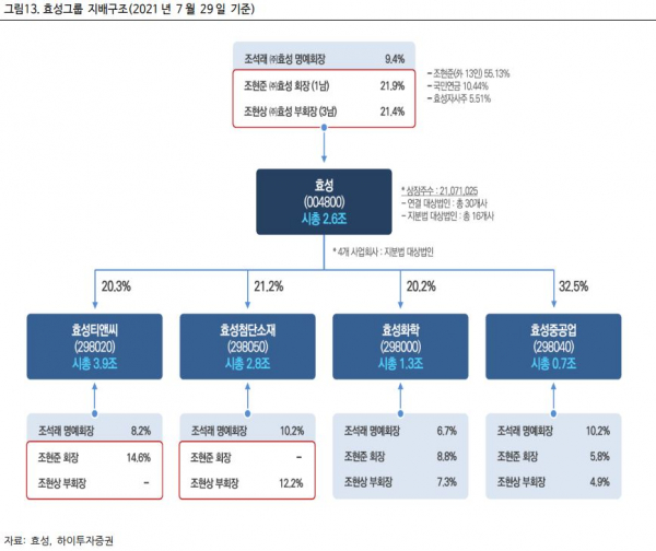 계열사뿐만 아니라 각 그룹 지주사인 코오롱과 효성 주가도 상승세를 타고 있다. 코오롱그룹과 효성그룹 모두 지주사 체제를 구축하고 있기에 자회사들의 성장 기대가 지주사 주가에도 반영되고 있다는 평가다.