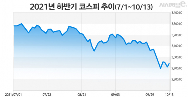 13일 금융권에 따르면 최근 코스피는 3000선이 붕괴되는 등 이달 들어 하락세다. 유가 등 원자재 가격 급등으로 인플레이션에 대한 우려가 커지면서 위험투자 심리가 위축된 결과로 풀이된다. 증시가 급락하자 올해 코스피가 3500선을 돌파할 것이라 예측했던 증권사들도 목표치를 낮췄다. NH투자증권은 코스피 지수 전망 범위를 2880~3020포인트로 낮췄다.