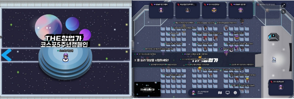 오직 회원사들을 위해 마련된 ‘게더타운'에는 코스포 회원 스타트업들이 총출동했다. 혁신을 이끄는 스타트업 창업가 모임답게 우주정거장의 여행자 콘셉트로 꾸며진 메타버스 공간에서 만나 자유롭게 소통하는 시간을 가졌다. 게더타운에는 연사를 참관할 수 있는 컨퍼런스 존부터 인터뷰 프로젝트 전시관, 창업가들을 만날 수 있는 토크 살롱 등 여러 존이 마련됐다. 컬리·직방·토스 등 유니콘 창업가들은 물론 여러 선후배 창업가들이 서로의 경험을 공유하고, 조언을 나눴다. 코스포가 강조한 선후배 스타트업의 네트워킹으로 행사는 마무리됐다.