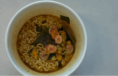 조리 방법은 두 가지다. 뜨거운 물을 붓고 기다리는 것과 전자레인지에 돌리는 것 중 원하는 방식으로 조리하면 된다. 기자는 컵라면은 전자레인지에 조리하는 게 훨씬 맛있다고 생각해 전자레인지 조리를 택했다. 뚜껑을 완전히 제거하고 돌리라고 안내돼 있어 뚜껑을 깔끔하게 뜯었다. 지금까지 수차례 라면을 전자레인지에 돌려왔지만 늘 별 생각 없이 뚜껑을 붙인 채로 조리해왔다. 이런 안내 문구에서 세심함이 느껴졌다.