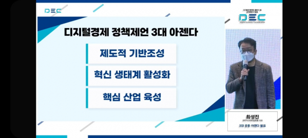 이날 출범식에서 디경연은 디지털경제 정책제언을 위한 3대 공동 아젠다를 발표했다. 제도적 기반 조성, 혁신 생태계 활성화, 핵심 산업 육성을 주요 아젠다로 꼽았다.