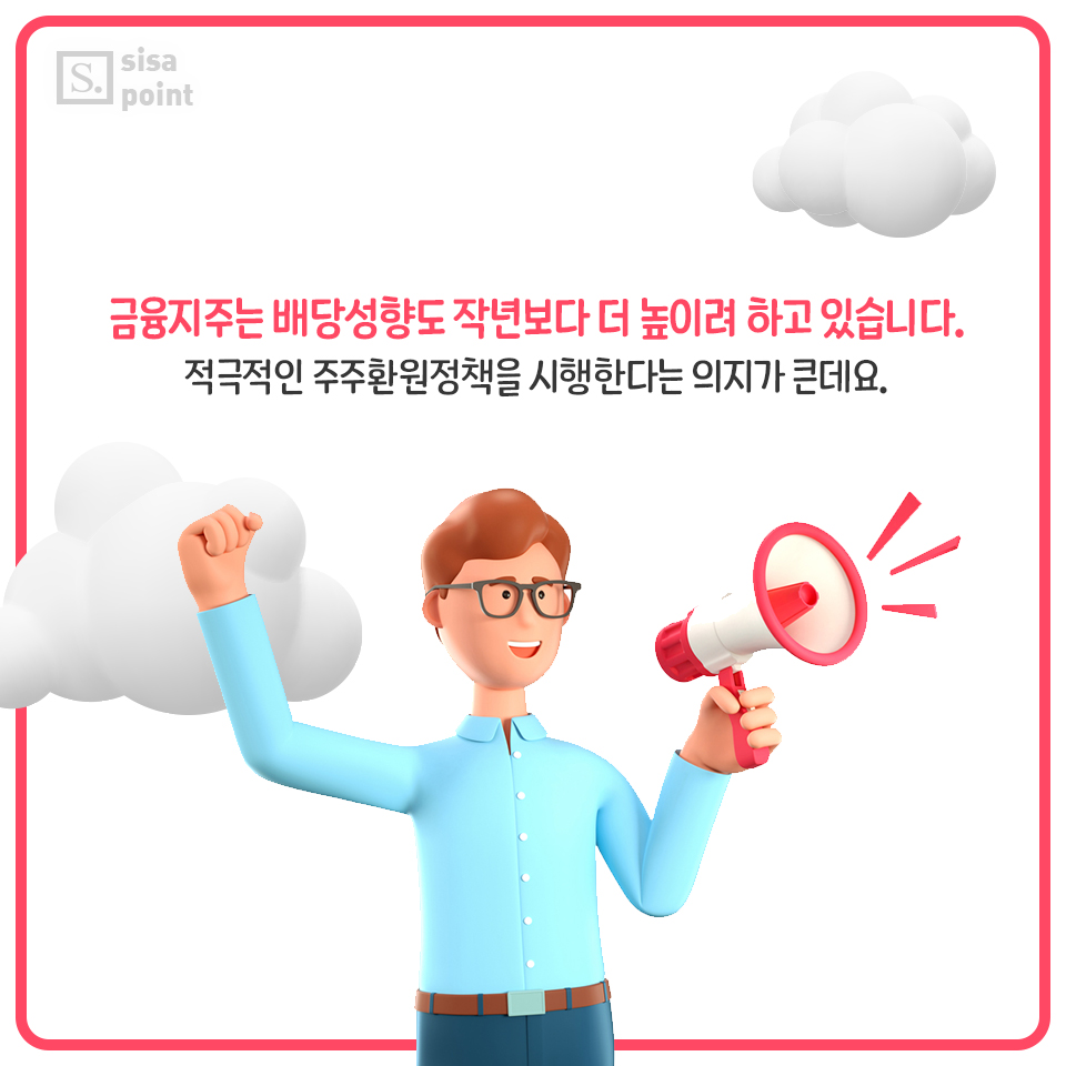 7. 금융지주는 배당성향도 작년보다 더 높이려 하고 있습니다. 적극적인 주주환원정책을 시행한다는 의지가 큰데요.