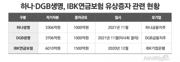 하나·DGB생명, IBK연금보험 금융지주·은행으로부터 자금 '수혈'
