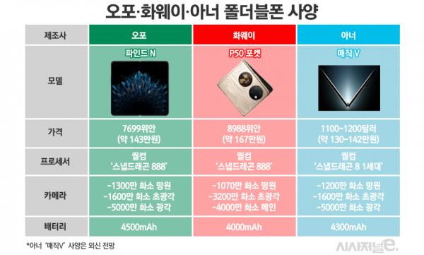 오포·화웨이·아너, 폴더블폰 공개···가격 경쟁력은 삼성전자 우위