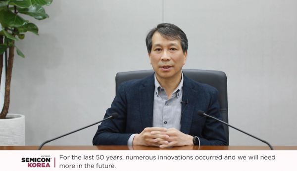 김형섭 삼성전자 반도체연구소장(부사장)이 9일 '세미콘 코리아 2022'에서 기조연설하고 있다. /사진=세미콘 코리아 캡처