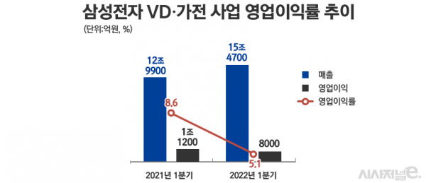 이같은 수요 약세는 양사의 지난 1분기 TV 사업 수익성 악화로 이어졌다. 이 기간 삼성전자 영상디스플레이사업부(VD)·가전 사업의 영업이익률은 5.1%로 지난해 1분기(8.6%)보다 3.5%포인트 감소했고, LG전자 HE사업본부(TV) 영업이익률은 9.9%에서 4.6%로 낮아졌다. 양사 모두 프리미엄 제품 호조에 힘입어 매출은 각각 19%(삼성전자), 1.4%(LG전자) 증가했지만, 수익성은 뒷걸음질 친 셈이다.