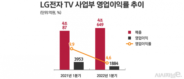 이정희 LG전자 HE사업본부 경영관리담당 상무는 “거시경제 리스크가 있어서 글로벌 TV 수요 둔화는 확실한 현상인 것 같다”며 “원자재 가격과 물류비 상승, 공급망 이슈 등으로 TV 수익성 확보가 어려운 건 사실”이라고 했다. TV 원자잿값과 운송비 등은 지난해부터 가파르게 상승하면서 비용 부담이 가중되고 있다.