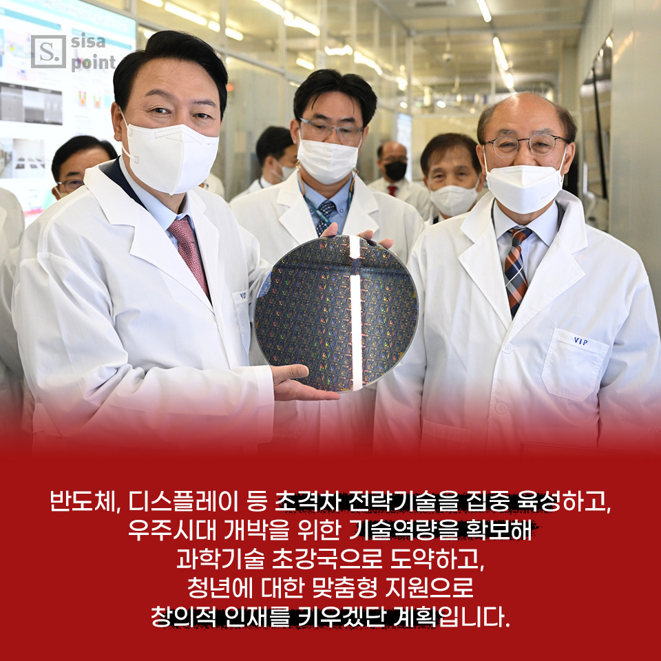 5. 반도체, 디스플레이 등 초격차 전략기술을 집중 육성하고, 우주시대 개박을 위한 기술역량을 확보해 과학기술 초강국으로 도약하고, 청년에 대한 맞춤형 지원으로 창의적 인재를 키우겠단 계획입니다.