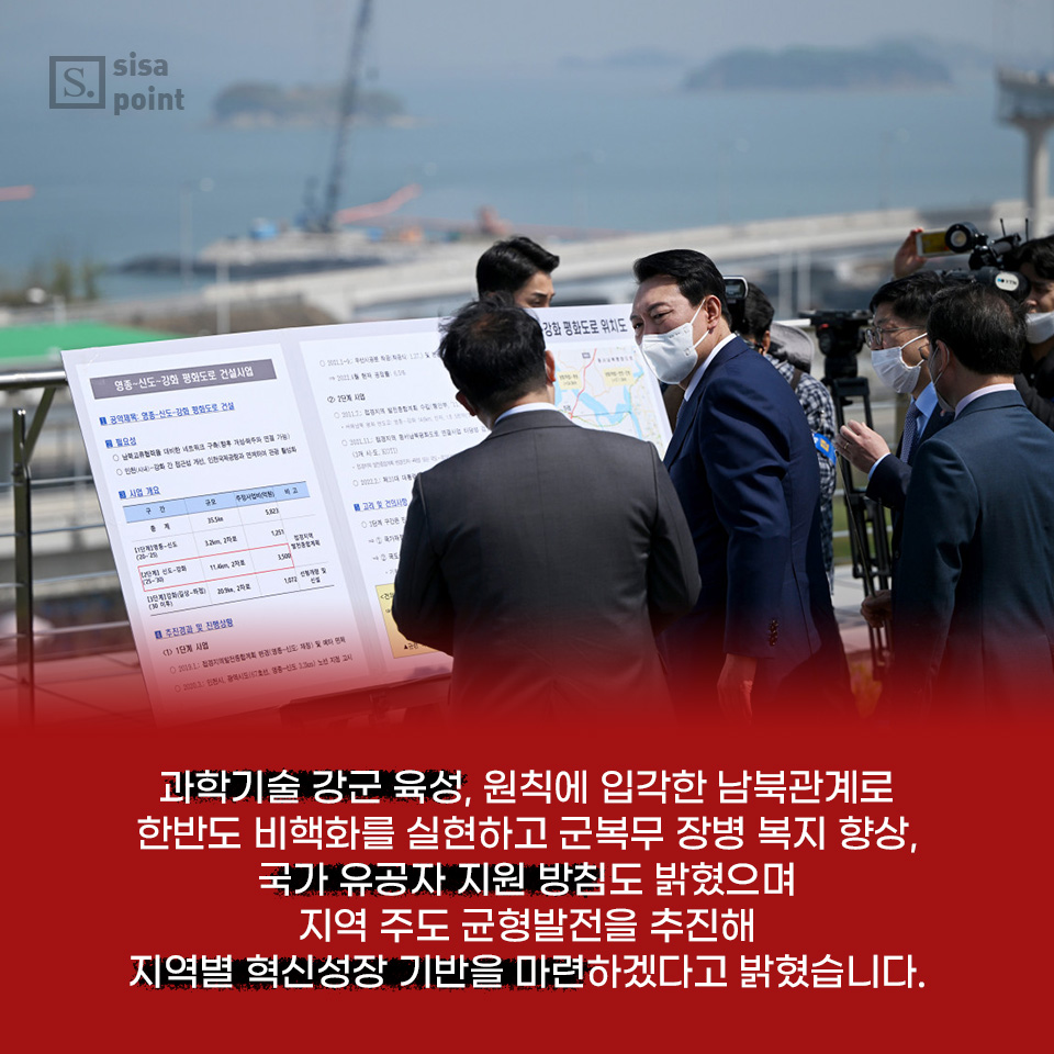 6. 과학기술 강군 육성, 원칙에 입각한 남북관계로 한반도 비핵화를 실현하고 군복무 장병 복지 향상, 국가 유공자 지원 방침도 밝혔으며 지역 주도 균형발전을 추진해 지역별 혁신성장 기반을 마련하겠다고 밝혔습니다.