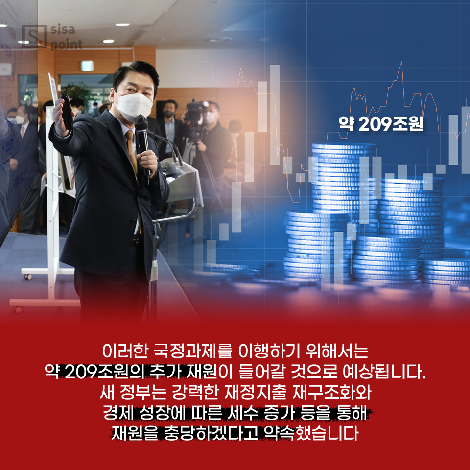 7. 이러한 국정과제를 이행하기 위해서는 약 209조원의 추가 재원이 들어갈 것으로 예상됩니다. 새 정부는 강력한 재정지출 재구조화와 경제 성장에 따른 세수 증가 등을 통해 재원을 충당하겠다고 약속했습니다