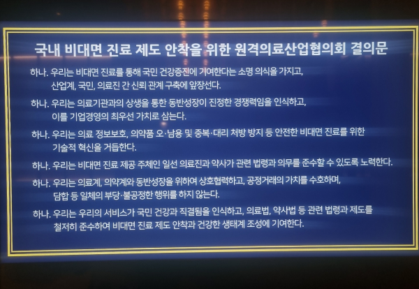 이날 참석한 원산협 회원사들은 비대면 진료 제도 안착을 위한 결의문도 발표했다.