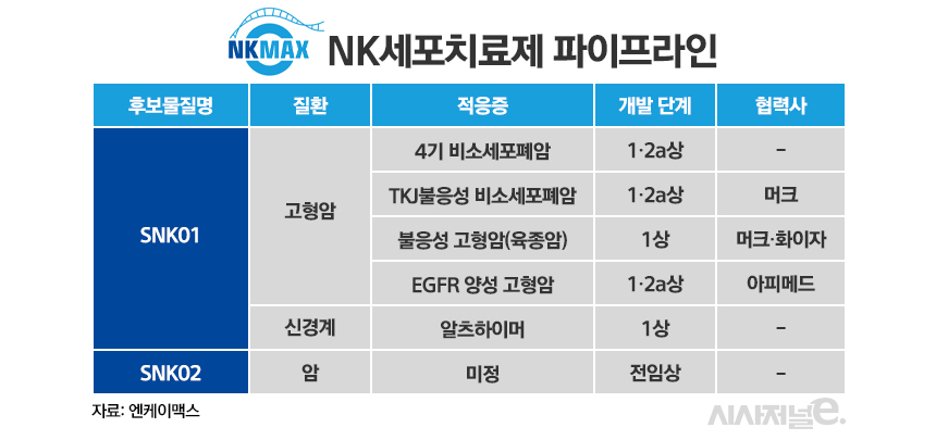 엔케이맥스는 SNK01 외에도 동종 면역세포치료제 ‘SNK02’를 연구 중이다.