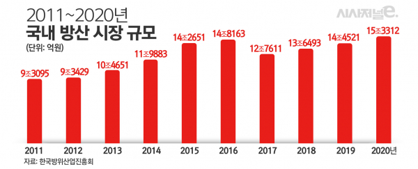 방산 3사의 시장 점유율은 고구려와 백제, 신라 등 삼국시대가 장기간 이어진 것처럼 큰 변동이 없었다. 지난 1999년 KAI가 항공기 제조업체인 대우중공업과 삼성항공, 현대우주항공의 항공 사업부문이 통합해 설립된 이후 정부가 주요 수요자라는 방위 산업의 특성상 미세한 변동은 있었지만 괄목할만한 변화는 없었다.