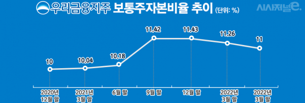 최근 모기업인 우리금융지주의 국제결제은행(BIS)자기자본비율이 하락하자 이를 관리하기 위한 조치다. BIS비율은 분모는 자산에 위험 정도에 따라 가중치를 매겨 산출하는 위험가중자산, 분자는 자기자본으로 구성된다. 우리금융의 올해 6월 말 기준 BIS비율(보통주자본비율)은 작년 말 대비 0.4%포인트 하락한 11.0%를 기록했다. 우리금융은 올해 2분기에 4대 금융지주(KB·신한·하나·우리) 가운데 유일하게 분기 기준 최대 실적 기록을 작성했지만 BIS비율은 하락했다.