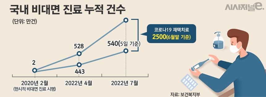 복지부에 따르면 이달 5일 기준 한시적 비대면 진료 건수는 총 540만건에 달한다. 여기에 코로나19 재택치료 환자 모니터링 등에 해당하는 2500만건을 더하면, 총 누적 건수는 3000만건을 훌쩍 넘는다.