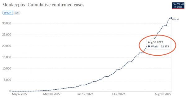 11일 글로벌 통계사이트 아워월드인데이터에 따르면 10일 기준 전 세계 원숭이두창 누적 확진자 수는 총 3만2373명에 달한다. 확진자의 90% 이상이 유럽과 북미 지역에 집중돼 있는 것으로 나타났다. 국내 원숭이두창 환자는 지난 6월 22일 발생한 환자 1명 외에 아직까지 추가로 보고된 것은 없지만, 전문가들은 실제 수치로 나타나지 않을 뿐 숨은 확진자들이 있을 가능성이 높다는 의견이다.
