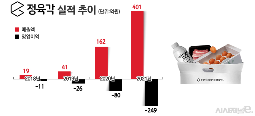 16일 업계에 따르면 정육각은 최근 가파른 성장세를 기록하고 있다. 지난 2020년 162억원의 매출액을 기록한 이후 지난해 400억원을 넘기면서 1년 만에 150% 성장했다. 정육각 자사몰의 최근 가입자수는 120만명을 돌파했다. 정육각은 앞으로 다양한 사업 시도를 통해 영업손실도 개선해 나간다는 계획이다.