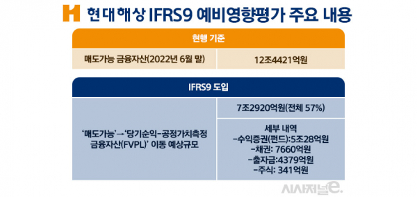 25일 금융권에 따르면 현대해상은 올해 상반기 회계보고서에서 내년 IFRS9 도입에 따른 예비영향평가 결과를 공개했다. 보험사들은 금융자산에 대한 회계기준이 IFRS9으로 바뀐다. IFRS9은 지난 2018년에 은행, 카드사 등 금융사에 도입됐지만 보험사의 경우 IFRS17 도입 시기까지 적용이 미뤄졌다. IFRS17은 보험사의 부채, IFRS9은 자산과 관련된 회계 기준이라고 보면 된다.