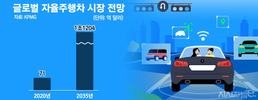 자율주행차 상용화를 앞두고 자율주행 시장이 급성장하고 있다. 글로벌 컨설팉 업체 KPMG에 따르면 지난해 71억달러(한화 9조6000억원)였던 글로벌 자율주행차 시장은 매년 평균 41%씩 성장해, 오는 2035년 1조1204억달러(한화 1509조7000억원) 규모로 성장할 것으로 전망됐다. 글로벌 완성차 업체들은 물론 자율주행 기술을 활용한 모빌리티 사업에 뛰어든 IT 기업들의 투자가 앞으로도 큰 비중을 차지할 것이란 분석이다. 최근 현대차도 자율주행 스타트업 포티투닷을 인수했다.