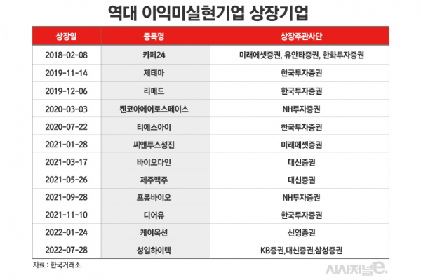 이익미실현 기업 상장은 2018년 상장한 카페24를 시작으로 지난 7월 성일하이텍까지 12개 기업이 선택한 상장 방식이다.