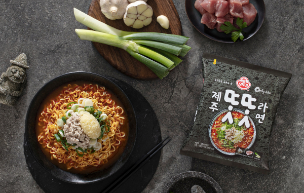 최근 ㈜오뚜기는 제주 로컬 맛집 ‘금악똣똣라면’과 협업해, 제주 지역 전용 제품인 ‘제주똣똣라면’을 출시하며 소비자 눈길을 끌고 있다. 정식 출시에 앞서 크라우드 펀딩 플랫폼 와디즈에서 선공개된 제주똣똣라면은 얼큰하고 진한 진라면에 금악똣똣라면의 레시피를 더한 제품으로, 오뚜기는 마늘, 돼지고기, 대파 등 제주산을 사용해 지역 농가와의 상생을 도모하고 있다. 제주 서귀포시 대정읍에서 자란 마늘로 만든 큼직한 동결건조 마늘블럭을 첨가했고, 제주산 돼지고기로 만든 후레이크와 건조 대파를 듬뿍 넣은 건더기 스프를 별첨했다. 특히, 소비자 비선호 부위 적체로 어려움을 겪는 국내 양돈업계를 돕기 위해 돼지 뒷다리살을 활용했다.