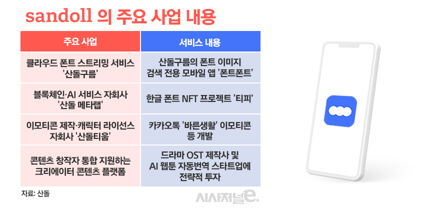 [시사저널e=염현아 기자] 국내 최초 디지털 폰트 기업 산돌이 이달 코스닥 입성을 앞두고, 사업 확장에 박차를 가하고 있다. 주요 사업인 글자체(폰트) 서비스를 넘어 크리에이터 콘텐츠 플랫폼 강자로 거듭나겠다는 목표에서다. 동유럽 등 해외 시장 진출을 위해 글로벌 폰트 제작사와의 인수합병(M&A)도 추진 중이다.
