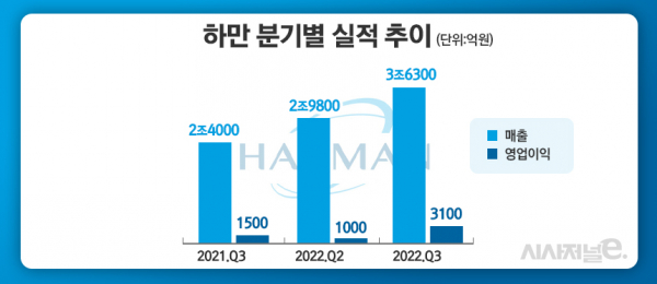 그러나 최근 대형 거래선을 잇따라 확보하면서 실적이 개선됐다. 하만은 지난 7월 도요타와 1000억원 규모의 5G 텔레매틱스(자동차용 무선통신) 장비 납품 계약을 체결한 것으로 알려졌고, BMW 전기차 ‘iX’에도 제품을 공급 중이다. 지난해 유럽과 북미 주요 완성차업체 대형 수주를 따내기도 했다.
