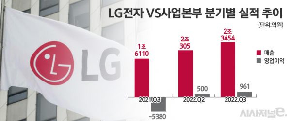 LG전자 VS사업본부는 2분기 연속 흑자를 기록했다. 전장사업은 2016년 1분기부터 25분기 연속 적자를 기록했지만, 매출 상승과 원가구조 개선에 힘입어 흑자를 이어갔다. 기업간거래(B2B) 사업을 맡고 있는 비즈니스솔루션(BS) 사업본부와 TV 사업을 담당하는 홈엔터테인먼트(HE) 사업본부가 지난 3분기에 각각 144억원과 554억원의 적자를 기록한 것과 대비된다.