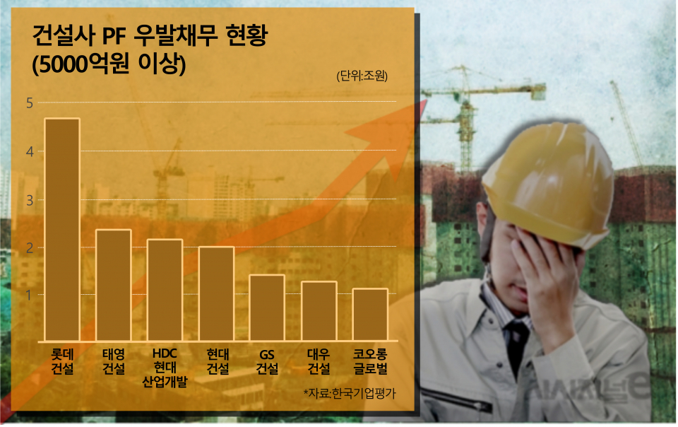 [시사저널e=길해성 기자] 건설 경기 둔화와 유동성 위기 심화로 일부 건설사들이 신용등급 위기에 처했다. 신용평가사들이 건설사의 프로젝트 파이낸싱(PF) 차입금에 대한 지급보증과 차환 여부를 들여다보는 만큼 PF 만기 연장이 힘든 건설사들을 중심으로 등급 조정이 이뤄질 수 있단 관측이 나온다.