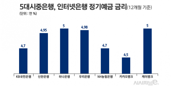 한 금융권 관계자는 "케이뱅크가 예금금리 인상 스타트를 끊었기 때문에 카카오뱅크도 금리를 올릴지 고민하고 있을 것"이라며 "시중은행이 예금금리 인상 경쟁을 자제하고 있는 만큼 인터넷은행 입장에선 자금을 모으는데 유리할 것으로 전망된다"라고 말했다.