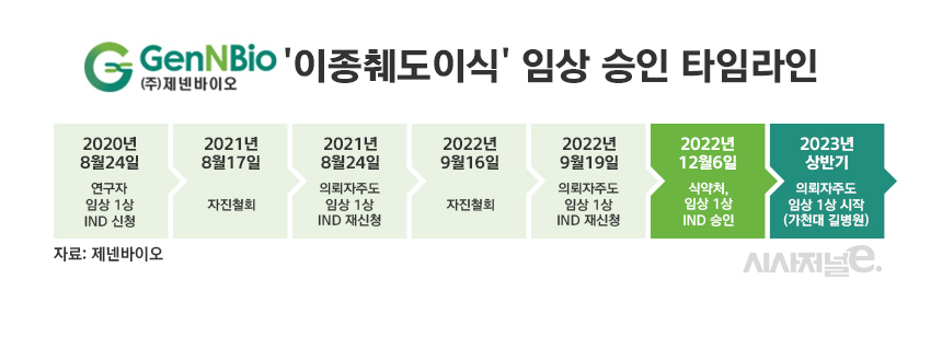 실제로 제넨바이오는 2020년 8월 첫 연구자 임상(IIT) 1상을 신청했지만, 식약처가 최종 심사기한인 1년을 넘길 것으로 예상되자 임상 신청을 자진 철회했다. 이후 일주일 만에 의뢰자 주도 임상(SIT)으로 자료를 보완한 제넨바이오는 다시 임상을 신청했지만, 식약처는 이번에도 1년 안에 승인 여부를 내놓지 못했다. 최종 처리기한이 다가오자 여러 추가 입증 자료를 요청했고, 제넨바이오는 자료 마련을 위해 또다시 철회를 택했다.