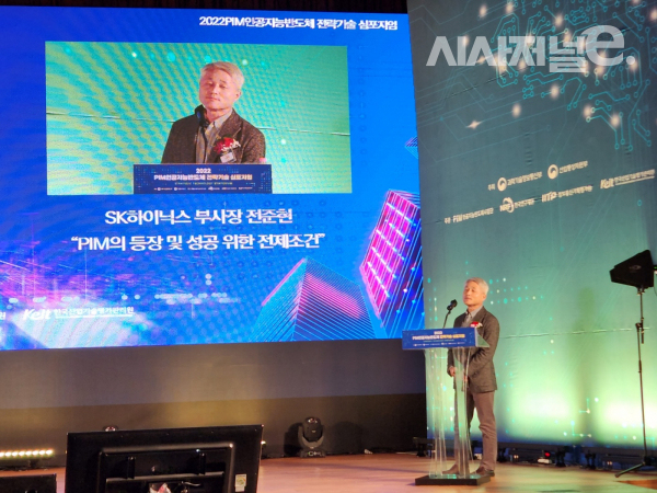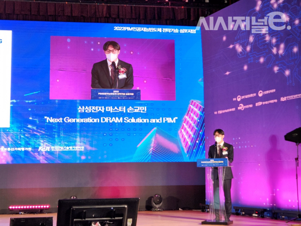 손교민 삼성전자 메모리사업부 D램 설계팀 마스터와 전준현 SK하이닉스 솔루션 개발 부사장은 13일 서울 강남구 코엑스에서 열린 ‘2022 PIM인공지능반도체 전략기술 심포지엄’에 기조연설자로 나섰다. 손 마스터는 ‘차세대 D램 솔루션과 PIM’, 전 부사장은 ‘PIM의 등장과 성공을 위한 전제조건’이란 주제로 각각 발표했다.
