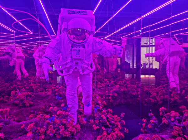 갤럭시코퍼레이션만의 정체성은 사옥 곳곳에도 녹아있었다. 여의도 IFC몰 53층 사옥에 들어서자 입구에서부터 우주 콘셉트의 독보적인 세계관이 펼쳐졌다. 갤럭시코퍼레이션이 메타버스를 탐험하는 '우주선'이라면, 이 공간은 거울을 통해 여러 멀티버스로 이어지는 '메타버스 세상'의 메타포다. 갤럭시 구성원들은 메타버스 탐험가인 '우주인'으로 구현됐고, 사람들이 '파란색 나비'들처럼 아바타로 변태하며 '열정의 꽃밭', 즉 메타버스 신대륙을 찾아간다는 함의가 담겼다.