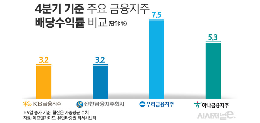 4분기 기준 배당수익률이 가장 높은 금융사는 우리금융 예상