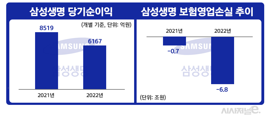 [시사저널e=유길연 기자] 삼성생명이 자회사를 포함한 작년 실적은 세법 개정 효과로 좋은 성적을 거뒀지만 회사 자체의 순익은 부진했다. 본업인 보험영업에서 손실 규모가 크게 불어났기 때문이다. 더구나 올해부터 도입되는 새 회계제도(IFRS17) 아래서 수익성을 보장해주는 보장성보험 실적도 줄어든 것은 문제란 지적이 나온다.