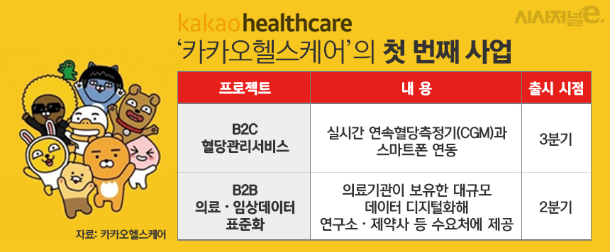 [시사저널e=염현아 기자] 카카오헬스케어가 출범 1년 만에 첫 번째 사업을 공개했다. 당뇨 환자를 위한 B2C 혈당 관리 서비스와 B2B 의료 데이터 표준화 사업이다. 그간 무려 12곳의 헬스케어 스타트업과 맺은 업무협약(MOU)의 첫 성과다. 카카오헬스케어의 MOU는 물론 투자, M&A 등 적극적인 행보로 파트너십을 확대할 전망이다.