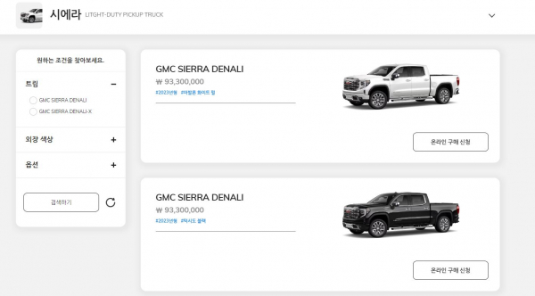한국GM은 지난해 수입 모델인 볼트EUV와 타호를 온라인에서 판매했으며, 올해 출시하는 GMC의 픽업트럭 ‘시에라’도 온라인으로 판매하기로 했다.