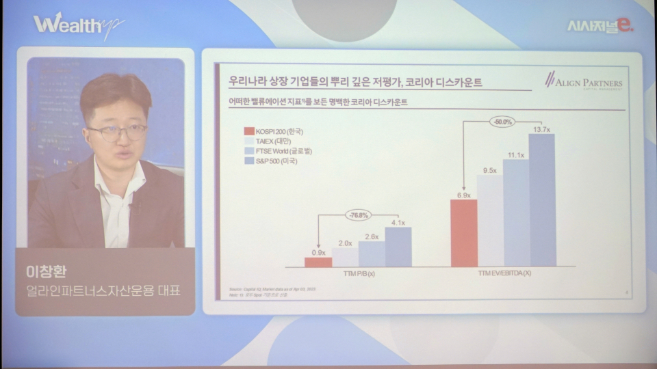 [시사저널e=유길연 기자] 국내 주주행동주의 운동을 이끄는 이창환 얼라인파트너스 대표가 “국내 상장 기업들이 저평가에서 벗어나지 못하고 있는 점은 큰 기회”라고 밝혔다. 저평가의 핵심 원인은 부실한 지배구조이기 때문에 행동주의 펀드가 할 수 있는 일이 많다는 것이다. 이 대표는 그간 달성했던 성과에 만족하지 않고 앞으로 투자 기업을 늘려 주주가치 극대화를 이루겠다는 계획이다.